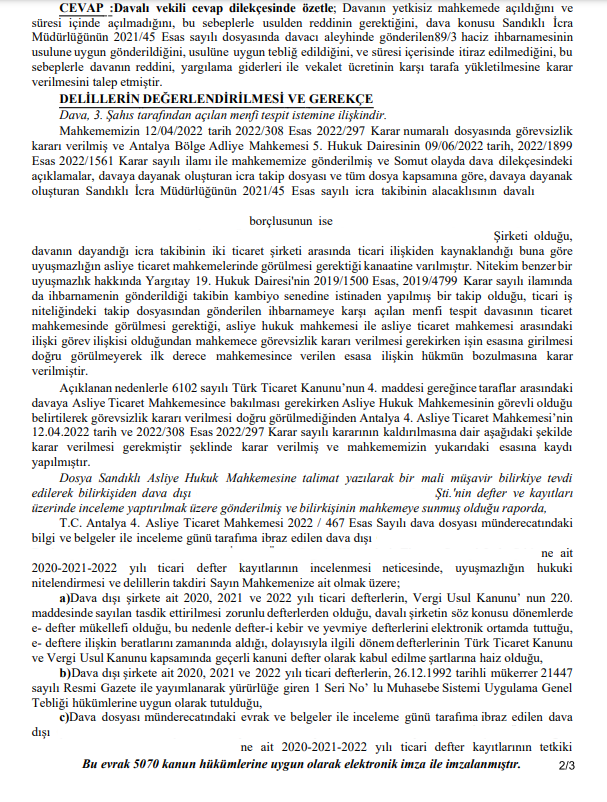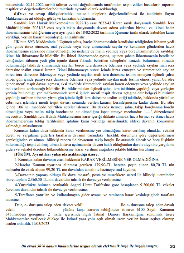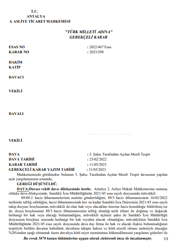 İİK 89/3 Haciz İhbarnamesine Göre Açılan Menfi Tespit Davası